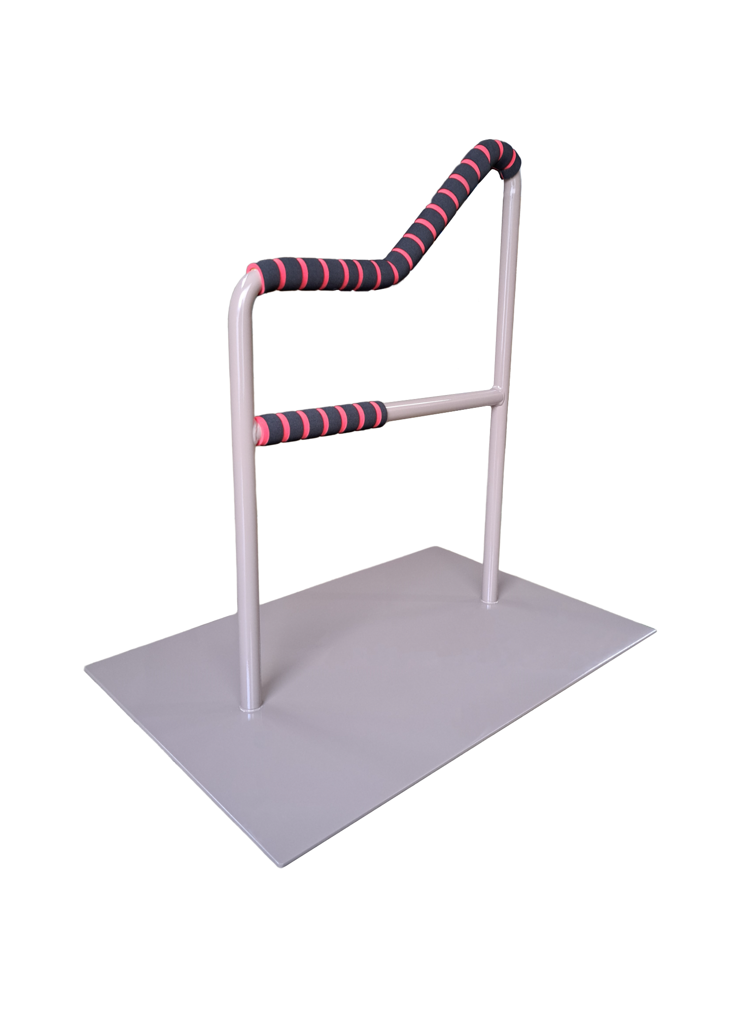 立ち上がりたい体勢に合わせて手すりの場所(上段斜め、上段、下段)を掴んで使用が出来る補助器具。