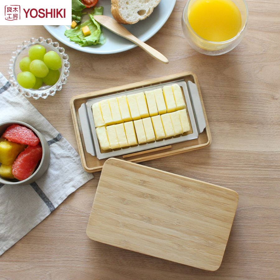 ステンレスバターカッター付き♪ おしゃれな天然竹製バターケース