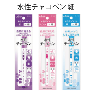 青…水や専用の消しペンで印が消せる、マーカータイプのチャコペンです。