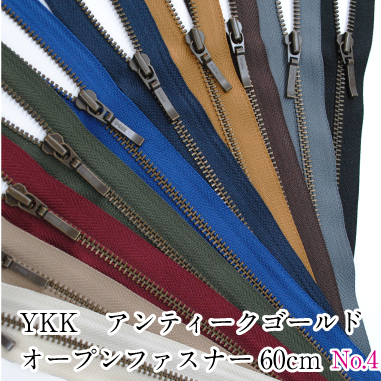 YKKアンティークゴールドオープンファスナー 60cm no4 生地 布 手芸 和洋裁材料 ブルゾン用 アウター用