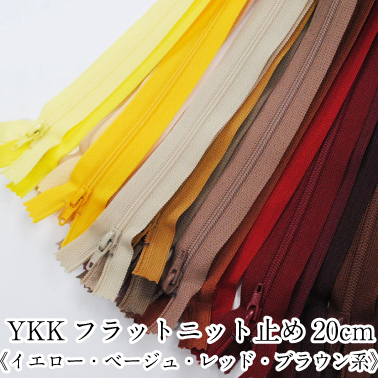 フラットニット 止め 20cm イエロー・ベージュ・レッド・ブラウン系 生地 布 手芸 和洋裁材料 YKK ファスナー 洋服 洋裁 ウェア バッグ ポーチ