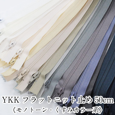YKKフラットニットファスナー 止め 50cm モノトーン・くすみカラー系