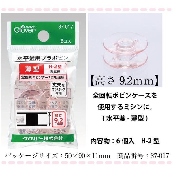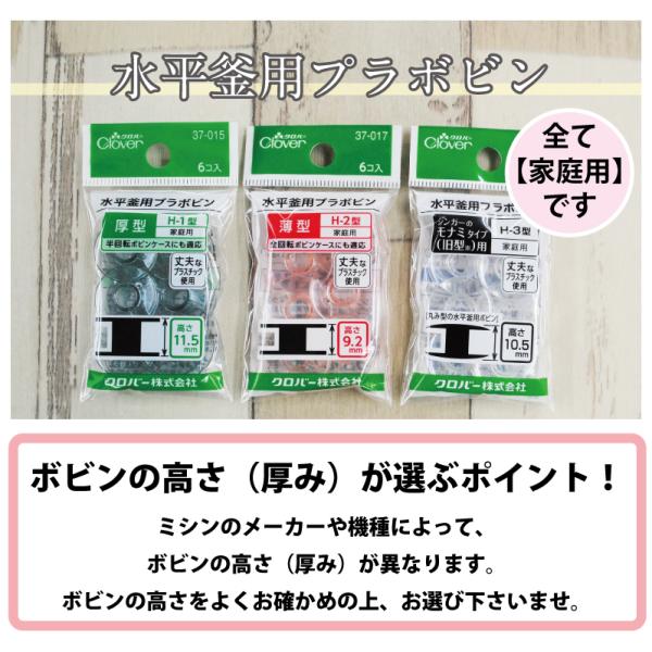 水平釜用プラボビン 37-015 37-017 37-019 クロバー Clover 家庭用ミシン 下糸 厚型 薄型 モナミ型 シンガー トヨタの水平釜 和洋裁用品 和洋裁材料