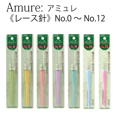 Amure:アミュレ レース針No.0 No.2 No.4 No.6 No.8 No.10 No.12 キャップ付き クロバー Clover 編み針