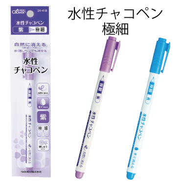 青…水や専用の消しペンで印が消せる、マーカータイプのチャコペンです。
