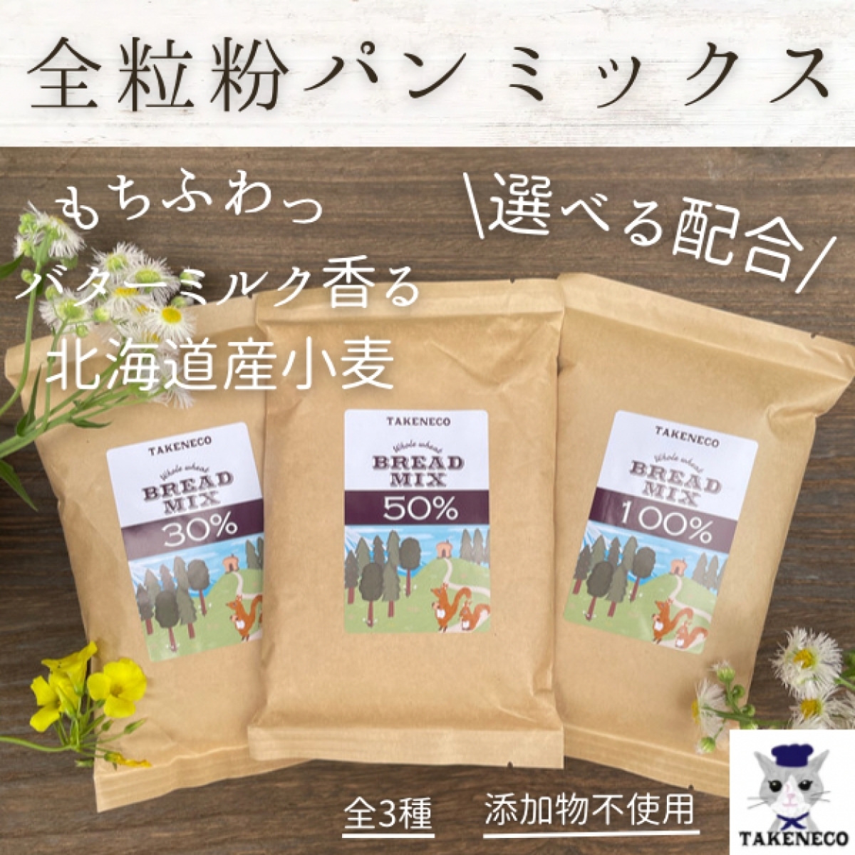 全粒粉パンケーキミックス 200g TAKENECO 北海道産小麦 バターミルク...