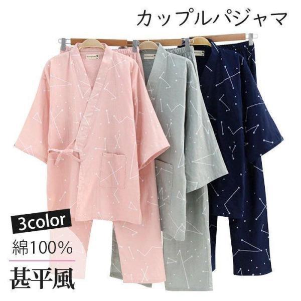 甚平 パジャマ 上下セット レディース メンズ 男女兼用 カップルペア 寝巻き セパレートパジャマ 長ズボン ルームウェア ナイトウエア 春 夏 浴衣