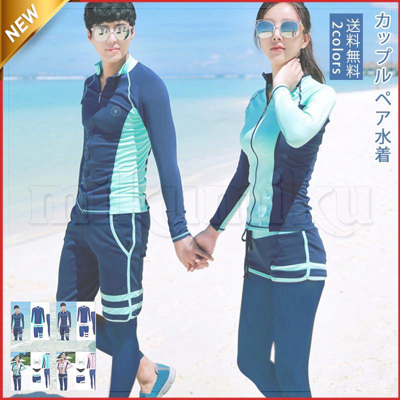 ペア ラッシュガード カップル ペアルック 水着 レディース 5点セット メンズ 3点セット ウェットスーツ セットアップ 競泳体型カバー UV対策