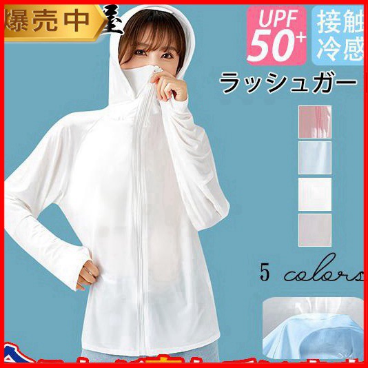 ラッシュガード レディース 体型カバー ハイネック 飛沫防止 マスク 水着 接触冷感 ひんやり 涼感 長袖 紫外線対策 日焼け防止 フード付き
