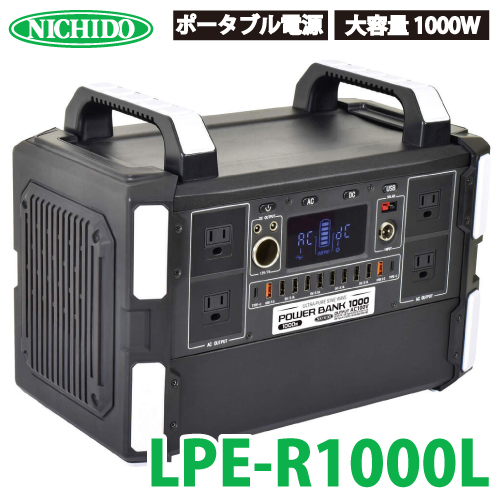 日動工業 ポータブル電源 パワーバンク1000 LPE-R1000L 大容量1000W 屋内型 充電式 コンセントAC100Vが4個 アウトドア 車中泊 もしもの備えに