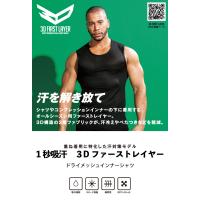 □2層構造生地で吸汗性に優れたポリエステルを使用した外側の生地が、水分を含まない性質を持つポリプロピレンのメッシュ状に編み込まれた肌面の生地から汗を吸い上げて水分を外側に瞬時に逃がします。
