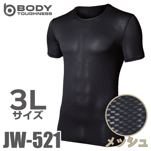 おたふく手袋 メッシュインナー 半袖クルーネックシャツ JW-521 ブラック 3Lサイズ 3Dファーストレイヤー ブラック