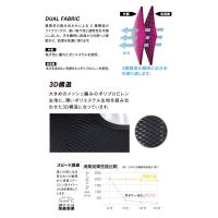 □2層構造生地で吸汗性に優れたポリエステルを使用した外側の生地が、水分を含まない性質を持つポリプロピレンのメッシュ状に編み込まれた肌面の生地から汗を吸い上げて水分を外側に瞬時に逃がします。