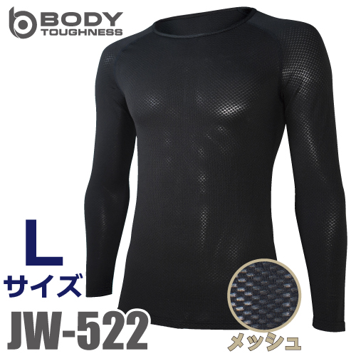 おたふく手袋 メッシュインナー 長袖クルーネックシャツ JW-522 ブラック Lサイズ 3Dファーストレイヤー ブラック ドライ