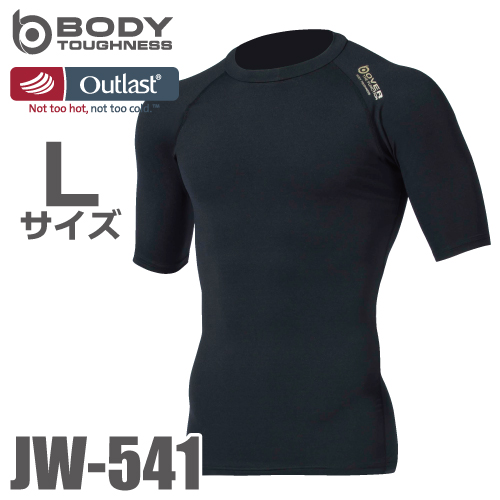 おたふく手袋 アウトラスト ストレッチ半袖インナーシャツ JW-541 クルーネック ブラック Lサイズ 夏冬兼用 NASA オールシーズン ブラック Outlast