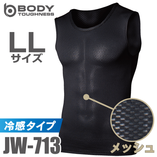 おたふく手袋 冷感メッシュインナー ノースリーブクルーネックシャツ JW-713 ブラック LLサイズ 登山 スポーツ 熱中対策 ブラック 空調服 ユニフォーム