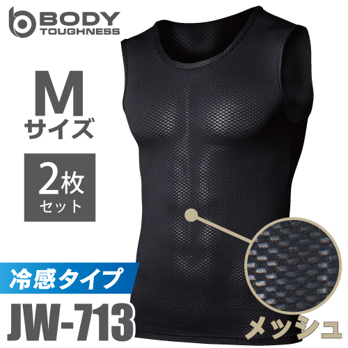 おたふく手袋 冷感メッシュインナー ノースリーブクルーネックシャツ JW-713 2枚セット ブラック Mサイズ 登山 スポーツ 熱中対策 空調服 ユニフォーム