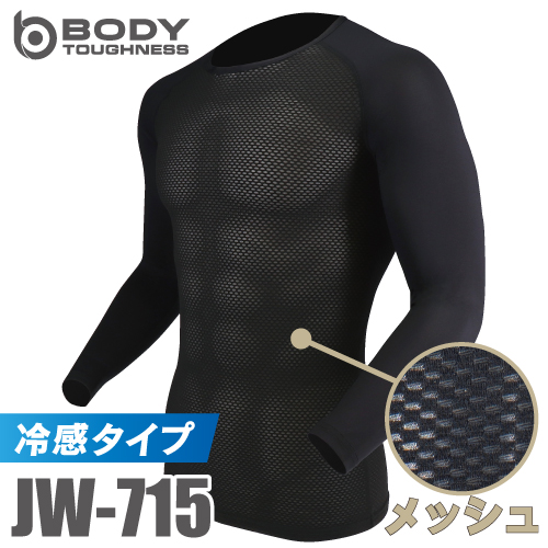 おたふく手袋 冷感メッシュインナー 長袖クルーネックシャツ JW-715 ブラック S〜3L 3Dファーストレイヤー ブラック ドライ 空調服のインナーに最適!