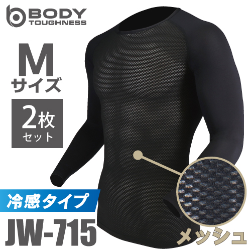 おたふく手袋 冷感メッシュインナー 長袖クルーネックシャツ JW-715 2枚セット ブラック Mサイズ 3Dファーストレイヤー ドライ 空調服のインナーに最適!