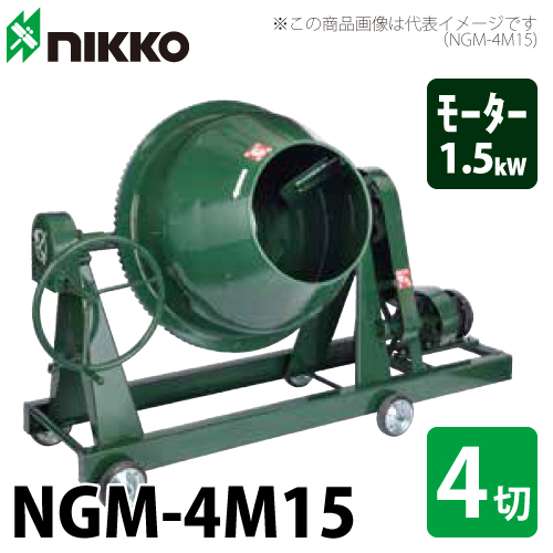 トンボ工業 (配送先法人様限定) 電動コンクリートミキサー NGM-4M15 110L(4切) モーター:三相200V×1.5kw×4P 車輪付き グリーンミキサー