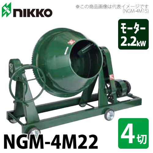 トンボ工業 (配送先法人様限定) 電動コンクリートミキサー NGM-4M22 110L(4切) モーター:三相200V×2.2kw×4P 車輪付 グリーンミキサー