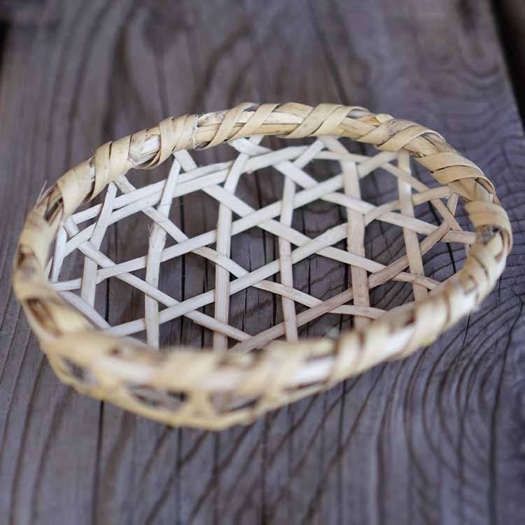 丈夫な根曲竹を六ツ目編みにして素朴なおしぼり籠にしました。