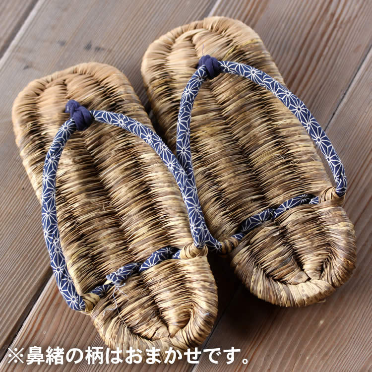 天然素材を手作りしておりますので、形や色目、大きさが写真と若干違う場合があります。もともと昔の草履の場合は、指は草履の外に出ており土をつかむように歩くのが通常でした。現代的にアレンジして作っていますが指が床をつかむような感じで歩けてそれが鼻緒の効能もあり足の健康にいいといわれます。