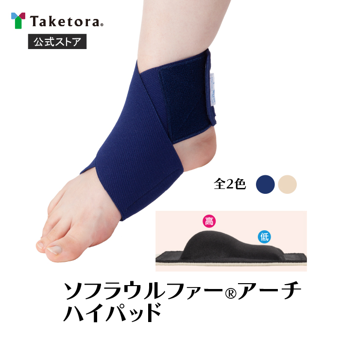 ソフラウルファーアーチ ハイパッド ベージュ/ネイビー S/M/L/LL 8の字固定バンド付アーチパッド 左右兼用 足底腱膜炎 足底筋膜炎