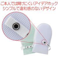 ・ご本人には外しにくい構造のアイデアホックを採用。危険な行為やおむついじりがみられるとき、一時的に使用することで医療行為や介護をサポートします。