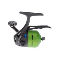 Lew's ルーズの小型アンダースピン(トリガースピン)リール、クラッピーサンダー Crappie Thunderです。型番はCTUSです。ゼブコの33マイクロのOEMモデルで、ハンドルが換装された分軽くなっていますがスペックはほぼ同じです。1ベアリングで、ラインキャパシティはUSA-4Lbs(約1.5号)が90yds(約82m)です。ギア比は4.3:1で、ハンドル1回転当たり巻上量は16インチ(約40.6cm)です。ボディ高は約91mm、ボディ長さは約72mm、重さは166g(ライン含)です。セラミック製デュアルピックアップピン、ラインアウトアラーム(バイトアラート)を採用しています。ハンドルは左右共用です。USA4Lbsのナイロンラインが巻いてあります。並行輸入品ですので国内保証書は付きません。包装はブリスターパックになります。