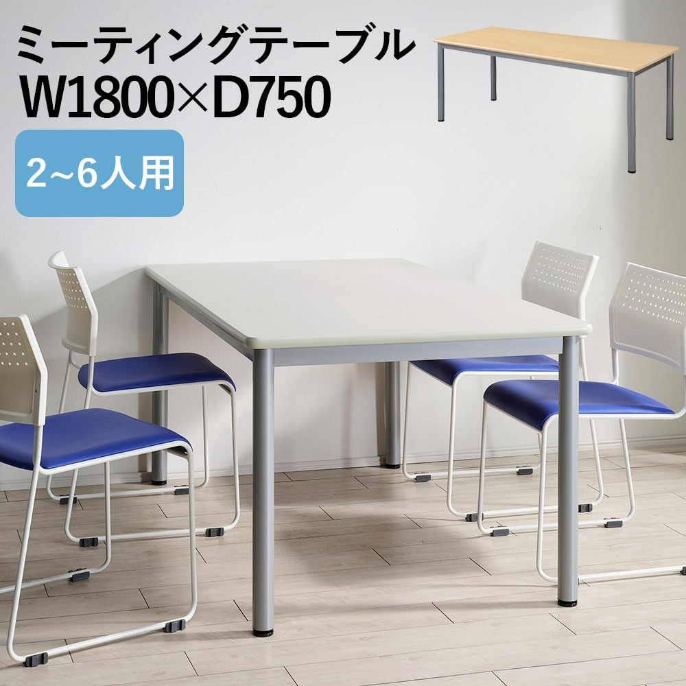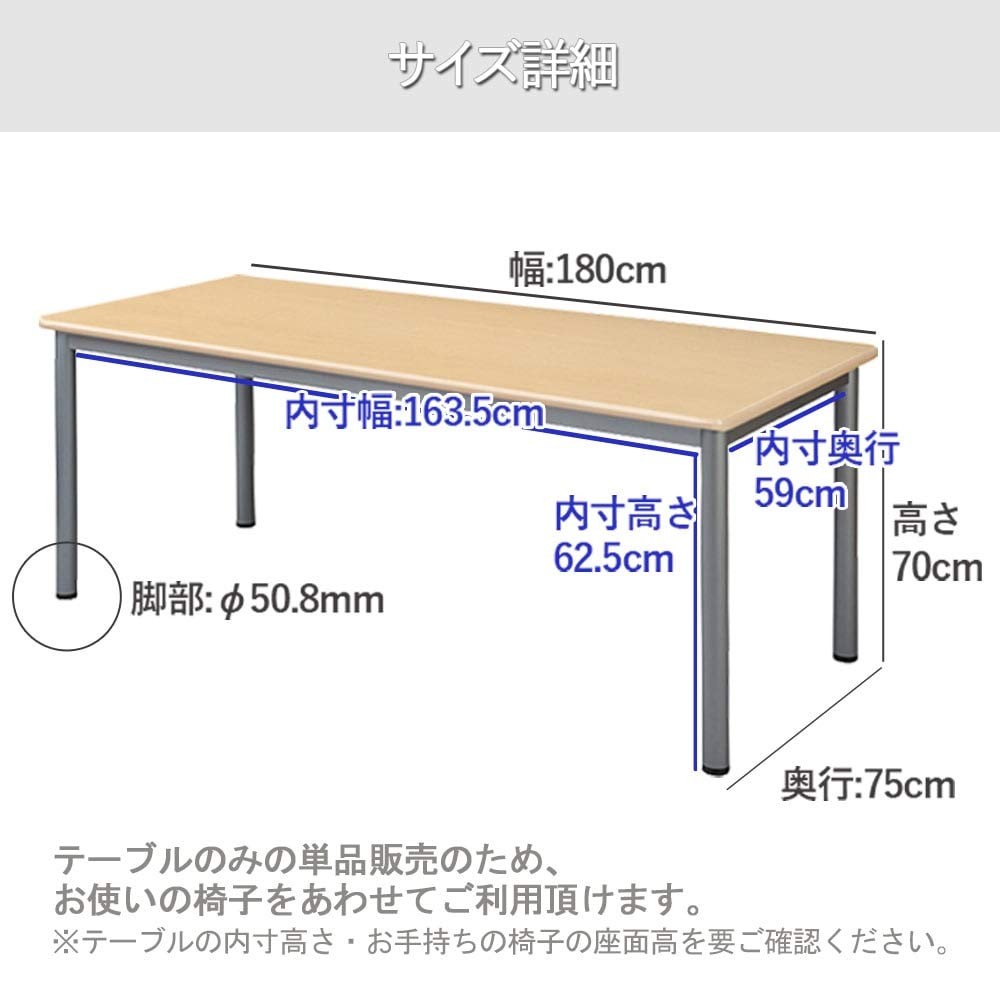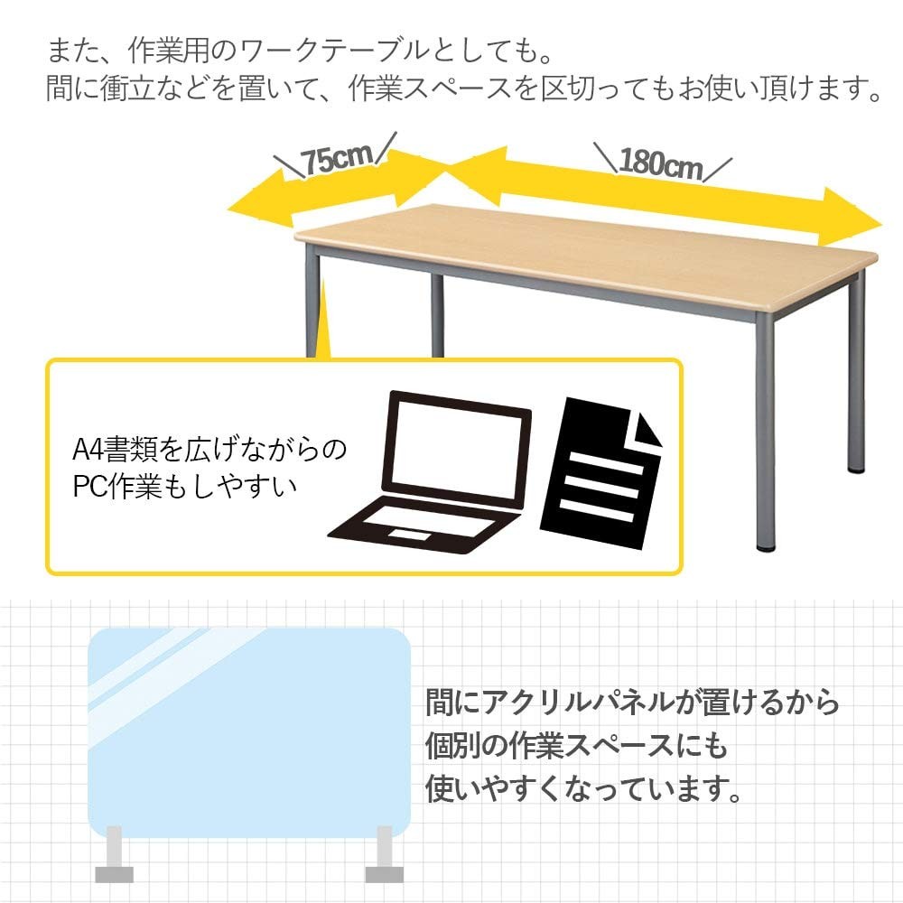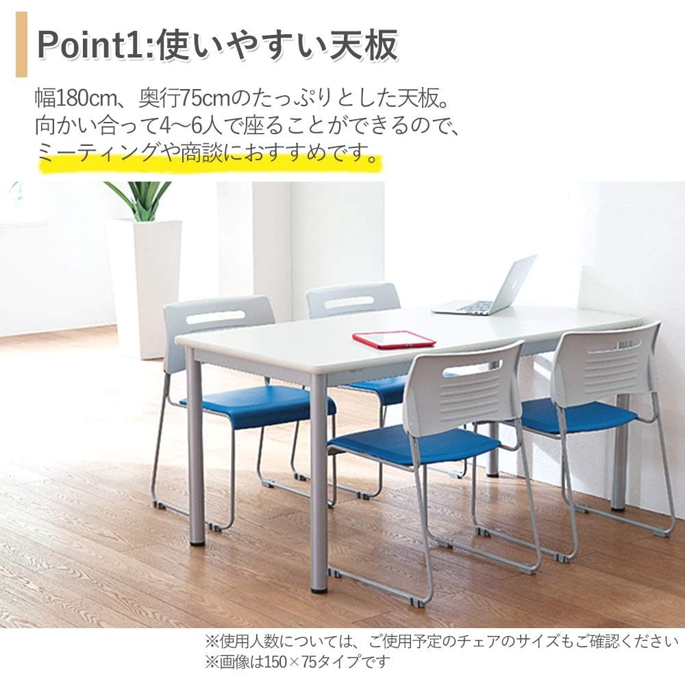 会議用テーブル ミーティング ビジネス 業務用 幅180 奥行75 高さ70 机 長方形 白 木製 スチール パソコン 作業台 事務所 デスク 1100001905