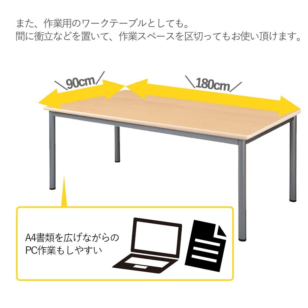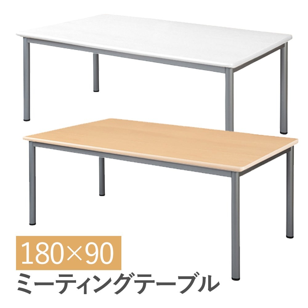 会議用テーブル テーブル ミーティング ビジネス 業務用 幅180 奥行90 高さ70 机 長方形 白 木製 スチール パソコン 作業台 事務所 デスク 1100001905