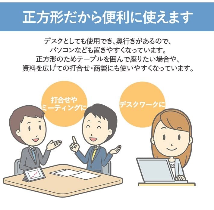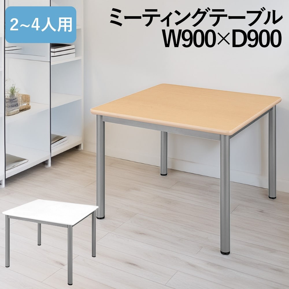 会議用テーブル ミーティング ビジネス 業務用 幅90 奥行90 高さ70 机 長方形 白 木製 スチール パソコン 作業台 事務所 デスク 1100001905