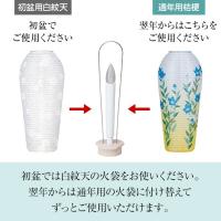 初盆には白紋天の火袋をお使いください。翌年のお盆からは通年用の火袋に付け替えてお飾りください。