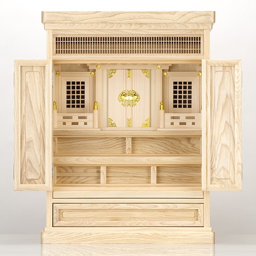 温かみのある美しい木目の「栓材」を贅沢に使用した祖霊舎(神徒壇)です。