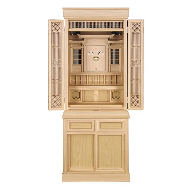 祖霊舎 神徒壇 台付型 引き出し高台タイプ 50号(杜印) 桧材 (床置き 御霊舎 祭壇宮) 国産(日本製)