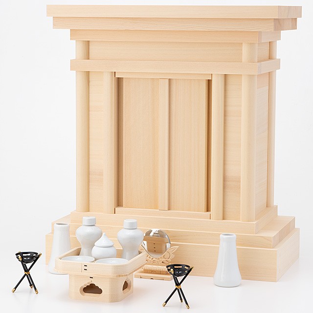 新しい祖霊舎を購入された場合は、五十日祭のときに神社の神職にお願いしてお祓いをして頂き、霊璽を祖霊舎の中に祀ります。