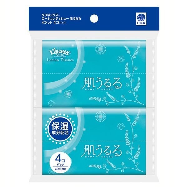 クリネックス ローションティシュー 肌うるる ポケット 24枚(12組) 4個パック (D)