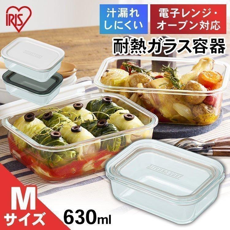 保存容器 ガラス 密閉 蓋付き おしゃれ オーブン 電子レンジ Mサイズ 耐熱ガラス 食品保存容器 食洗機対応 アイリスオーヤマ 耐熱ガラス容器 TGS-M