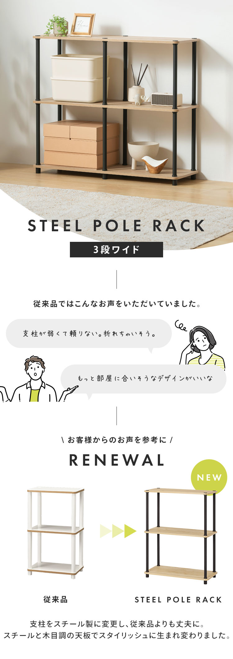 簡単に組み立てができるスチールポールラックです。