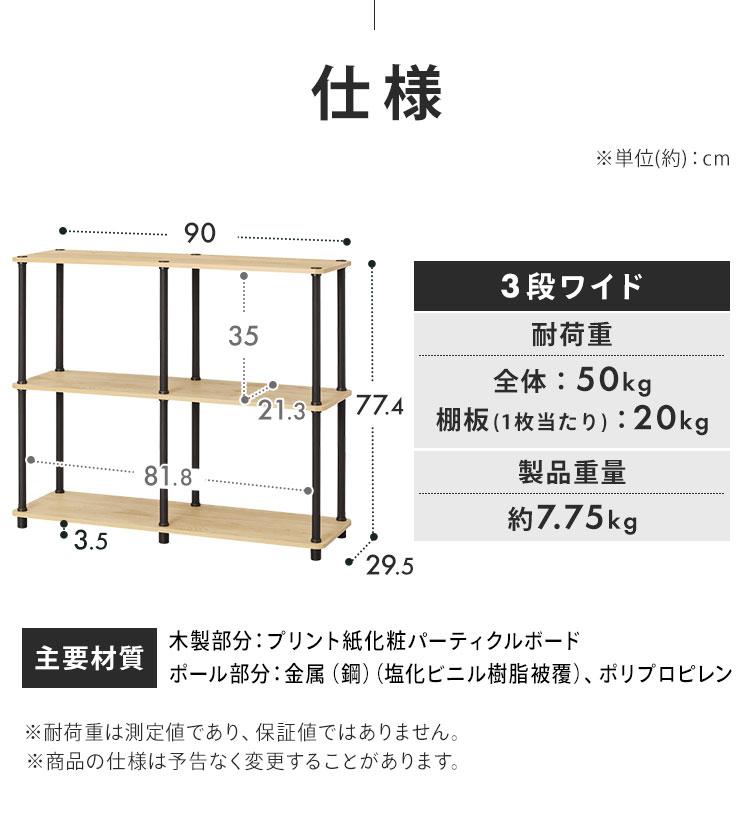 (検索用:ラック 棚 収納 3段 ワイド 幅90 奥行29.5 オープンラック オープンシェルフ 軽量 組み立て簡単 工具不要 本棚 収納棚 シェルフ シェルフ棚 おしゃれ 北欧 ディスプレイラック リビング 奥行30 スチールポールラック 4967576813280 4967576813297)