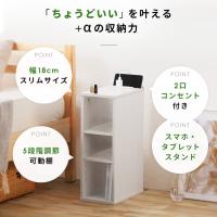 (検索用:ナイトテーブル サイドテーブル ベッドサイド テーブル デスク 棚 シェルフ 収納 コンセント付き スマホスタンド付き 4967576638395 4967576638418 4967576638425)