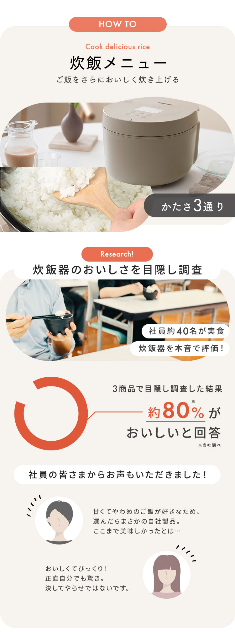 「米銘柄機能」「おこのみ炊き機能」など、よりお米の美味しさを引き出す機能が備わっています。