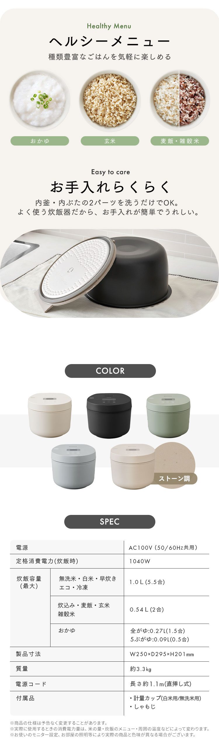 (※内釜、内ぶた、付属品は洗ってから使用してください。)