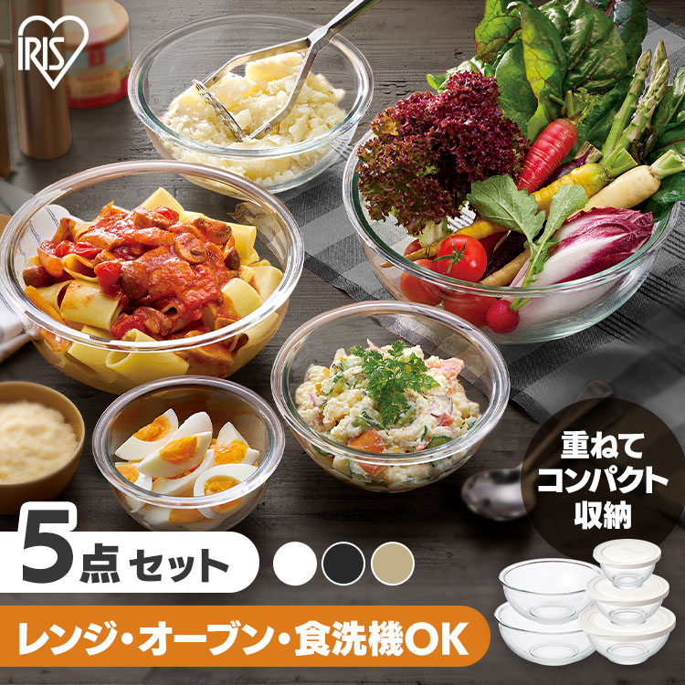 耐熱容器 耐熱 ガラス ボウル ボール 調理 料理 レンジ オーブン 冷蔵 冷凍 透明 クリア 食洗機対応 フタ付き 蓋 5個 4967576572712 4967576572729 4967576572736
