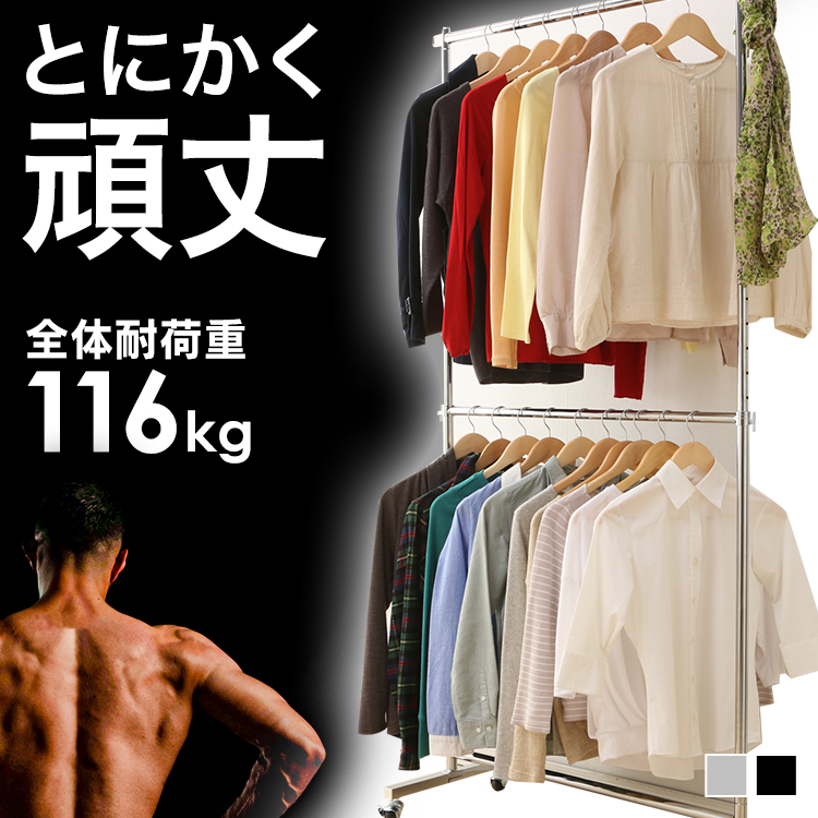 ハンガーラック パイプハンガー 耐荷重116kg 頑丈 丈夫 2連 ダブル キャスター付き CW3001-78 コート掛け 洋服掛け クローゼット収納 スチール製 高さ調節