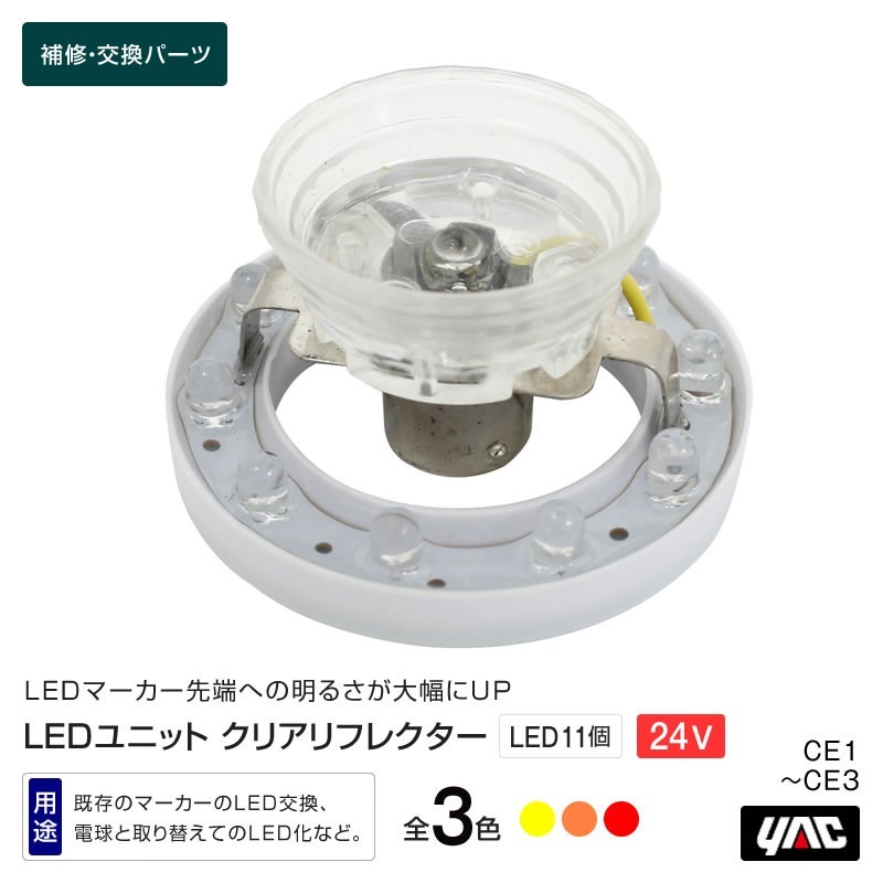 槌屋ヤック YAC LEDユニット クリアリフレクター 3色・イエロー・アンバー・レッド マーカーランプ補修・交換パーツ トラック・カー用品