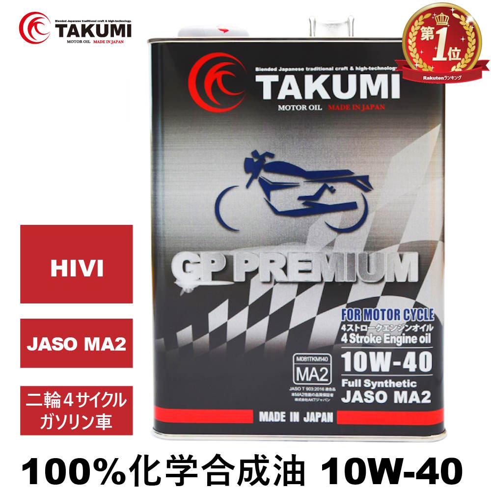 バイクオイル 二輪オイル 10W-40 4L 4サイクルエンジンオイル 4スト 化学合成油 MA2 合成油 TAKUMIモーターオイル 送料無料 2輪 エンジンオイル GP10W-40