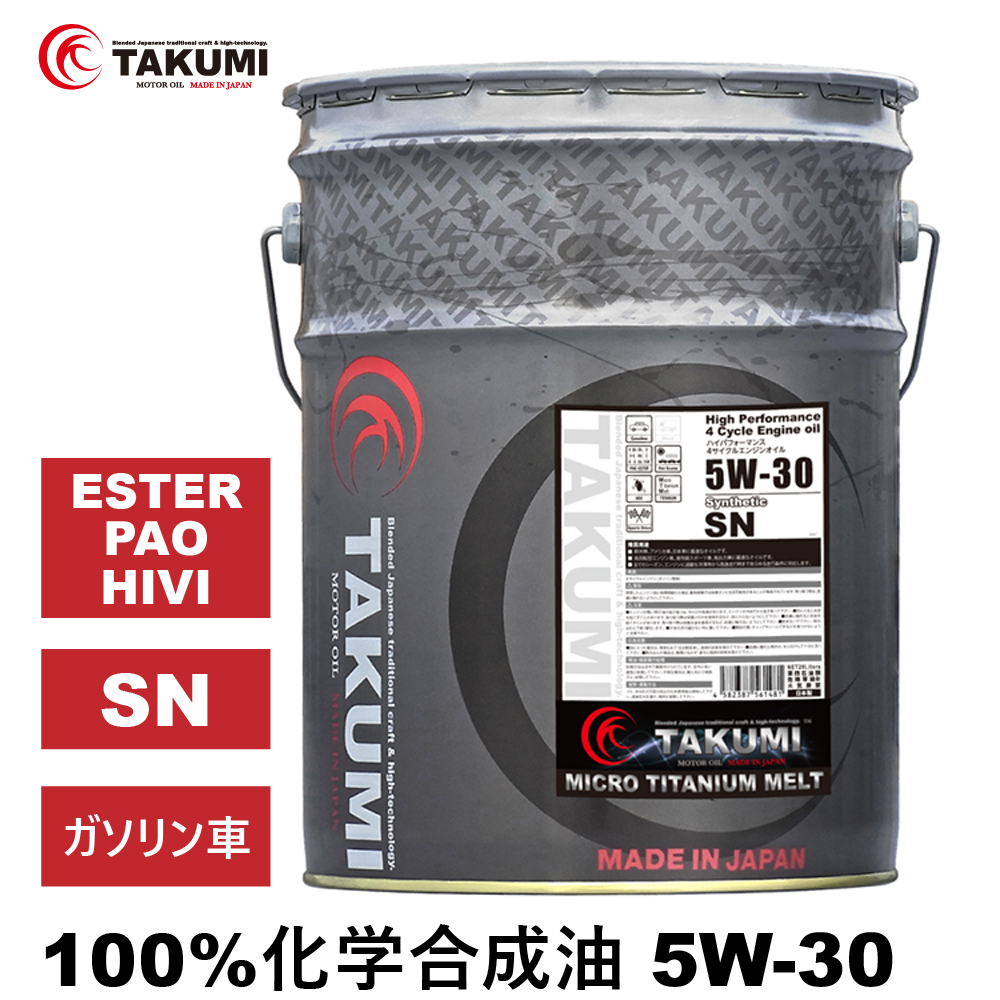 TAKMO(旧TAKUMIモーターオイル) エンジンオイル 5W-30 20L SN チタニウム配合 ガソリン車 化学合成油 合成油 HIVI エンジンオイル 4輪 送料無料 MT 5W-30