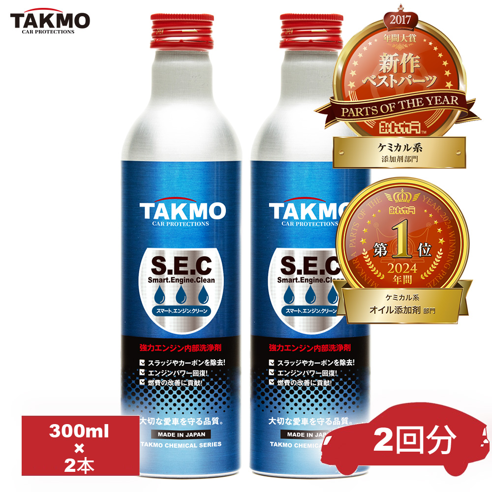 TAKMO(旧TAKUMIモーターオイル)添加剤 エンジンオイル添加剤 オイル添加剤 エンジン内部洗浄剤 フラッシング 内部洗浄剤 300ml 2本ガソリン車 ディーゼル車 SEC2